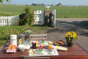 Het uitzicht over het natuurgebied de Harger- en Pettemerpolder vanaf de ontbijttafel is prachtig en iedere dag anders. Het strand en de Schoorlse duinen liggen op loopafstand. Kortom: een fijne plek om tot rust te komen en uit te waaien!